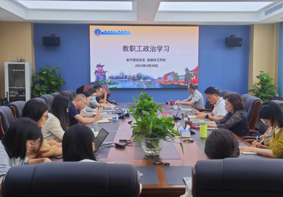 4月30日下午,老干部党总支、122cc太阳集成游戏在文华活动中心组织开展教职工政治学习,会议由老干部党总支副书记、122cc太阳集成游戏副处长罗梅主持。