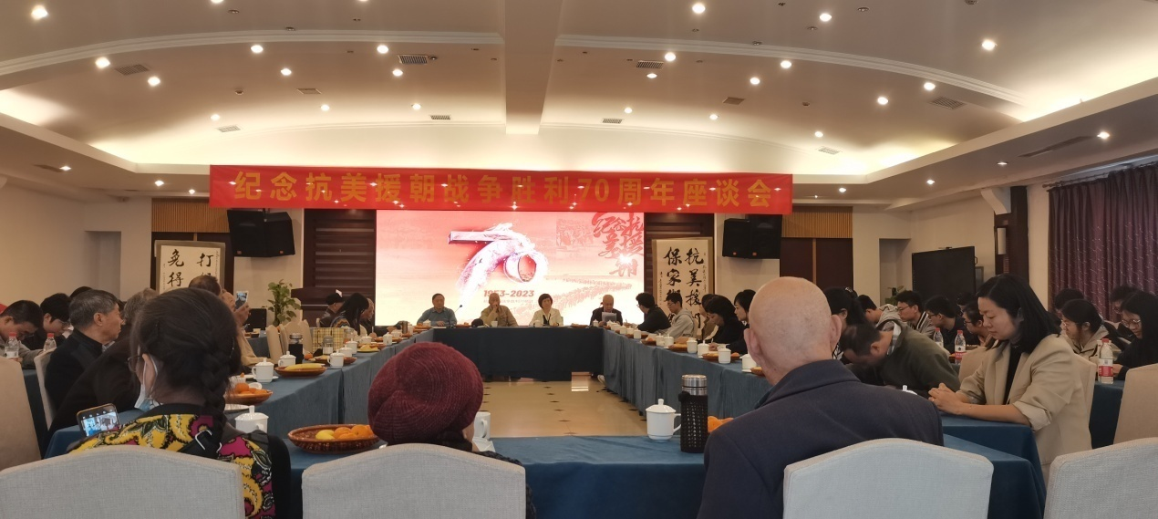 座谈会在庄严肃穆的国歌中拉开序幕。与会人员向在抗美援朝战争中牺牲的中国人民志愿军烈士默哀。
